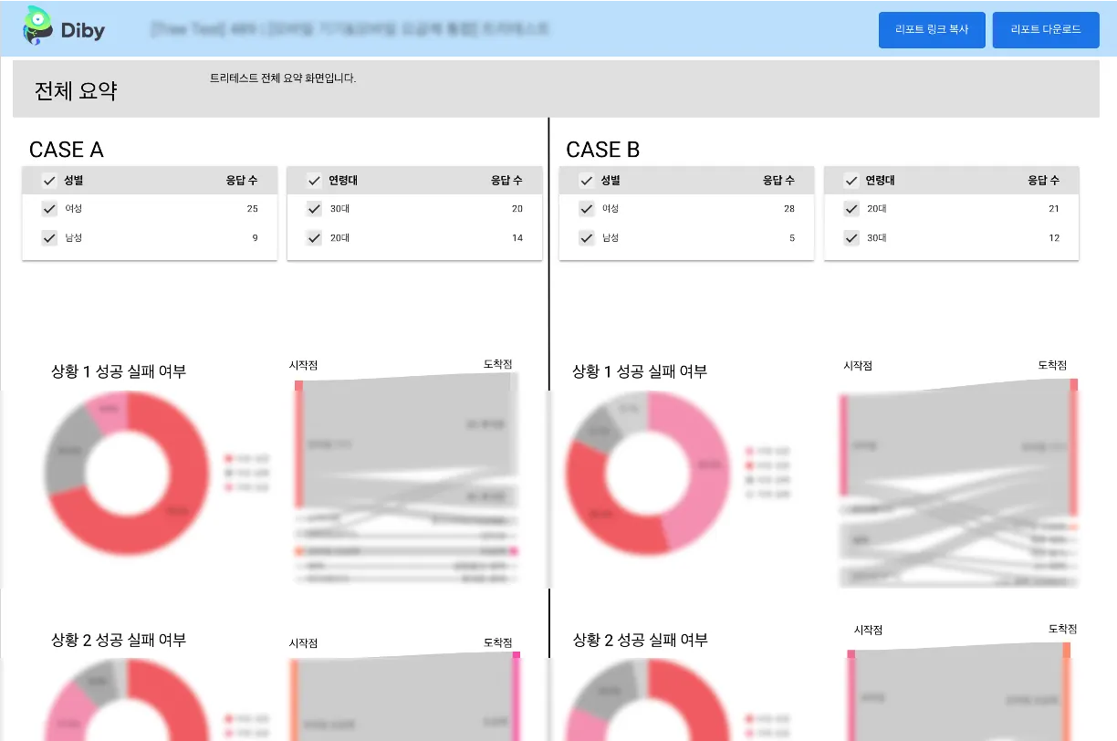 응답자가 정답 루트로 한 번에 도달했는지, 여기저기 다른 메뉴를 클릭하다가 정답을 선택했는지를 바로 성공, 우회 성공, 바로 실패, 우회 실패로 구분해서 표시해요.