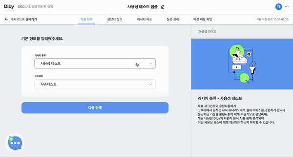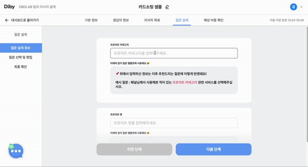 여기서 입력하신 정보는 바로 다음 단계인 ‘질문 편집’에 적용돼요!