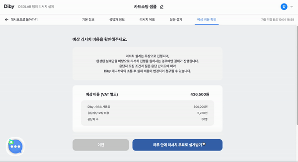 질문편집을 완료하면 질문개수와 유형에 따라 응답자에게 지급하면 좋을 정도의 보상 금액을 계산해서 보여드려요.
