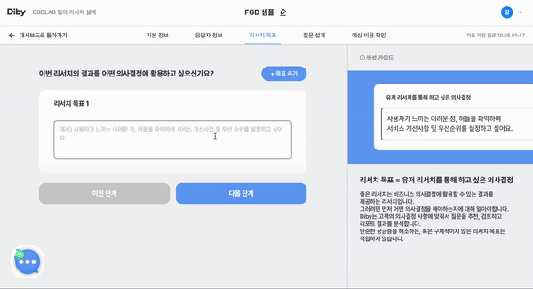 이후 결과 리포트를 공유받을 다른 팀원에게 리서치의 목표를 환기할 수 있어요.