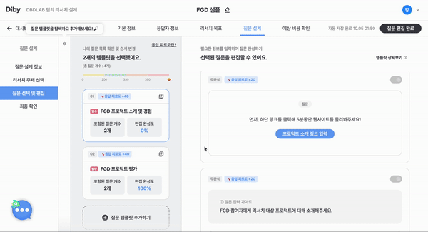 기본정보에서 리서치 종류를 FGD로 선택하고, 리서치 대상 프로덕트를 설정해주세요.